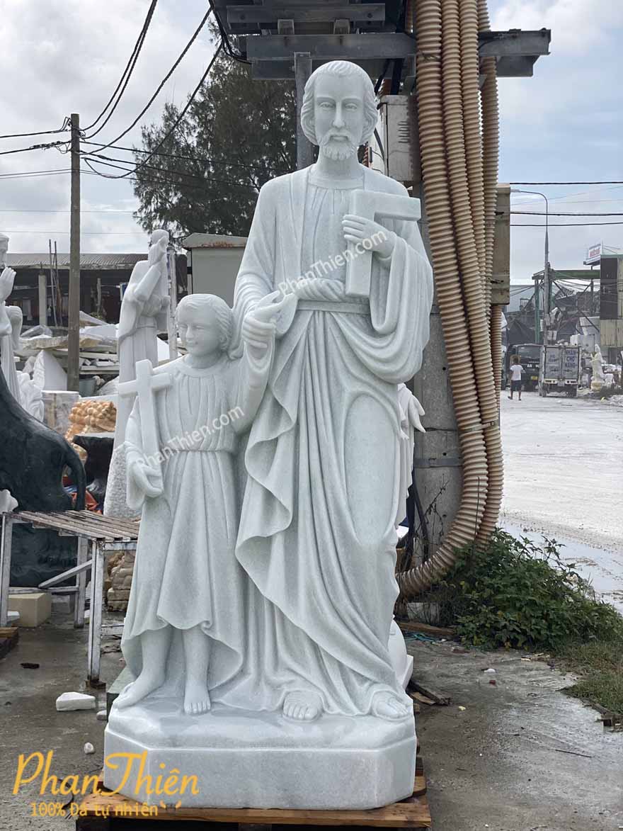 Tượng Thánh Giuse bằng đá Cẩm thạch trắng trong xanh tự nhiên và nguyên khối cao 2,2m